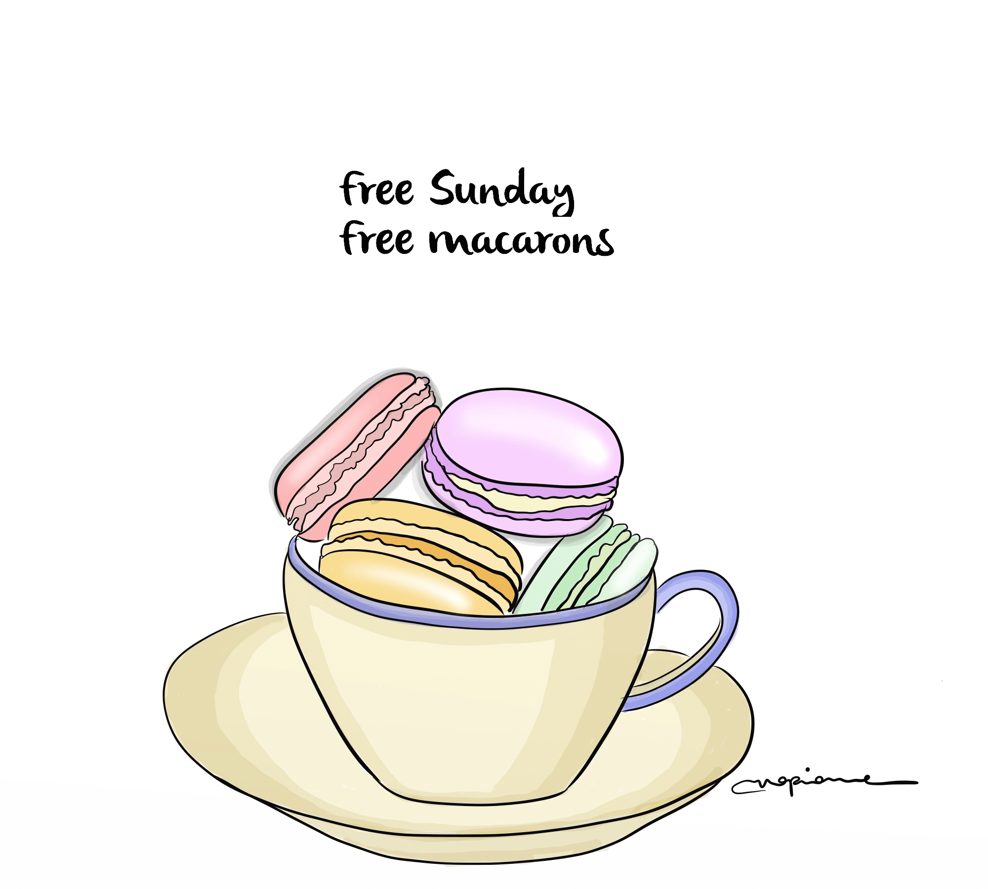 Macarons: No regrets. No second thoughts. Free Sunday.Free macarons. Vive la revolution